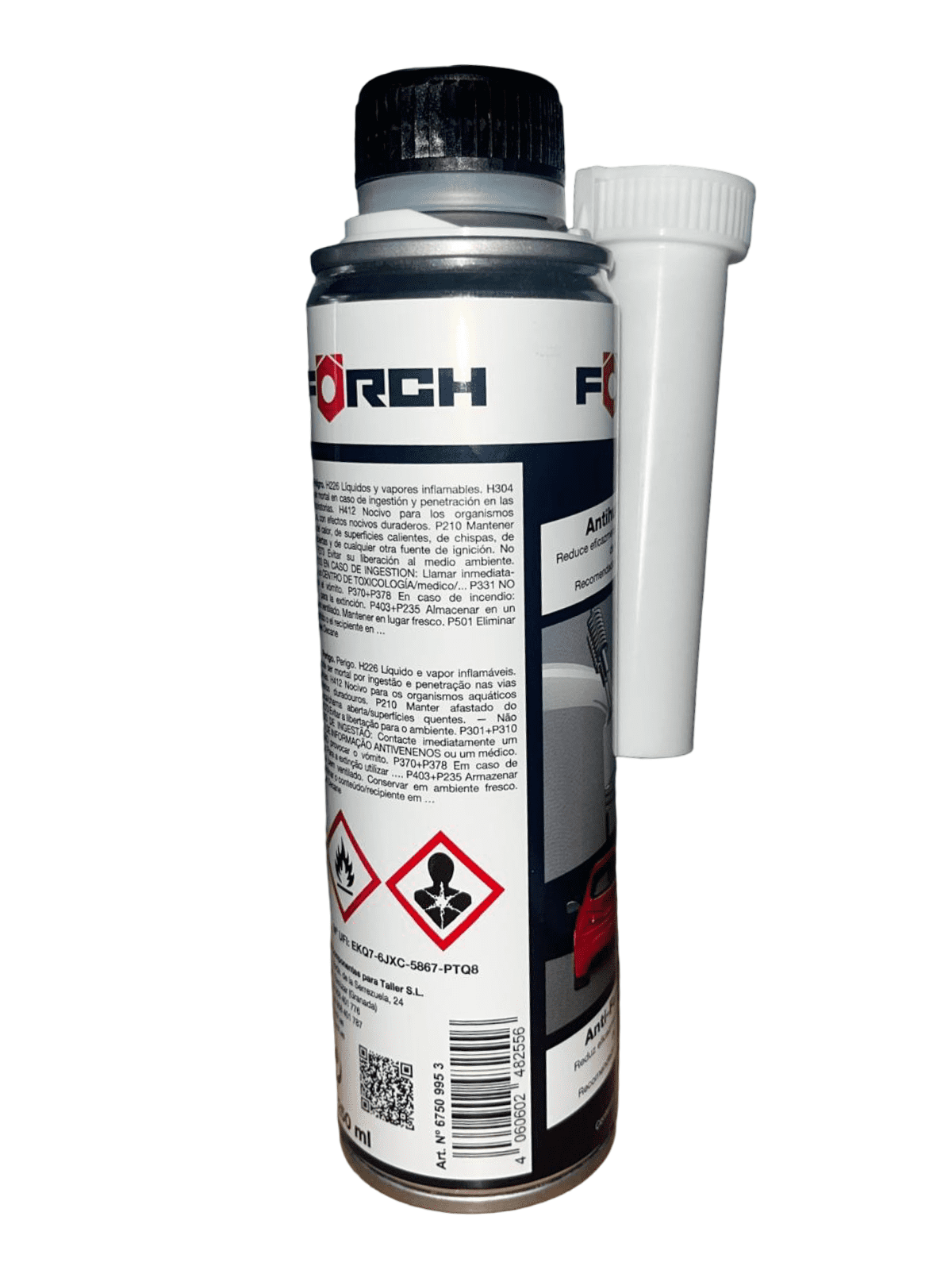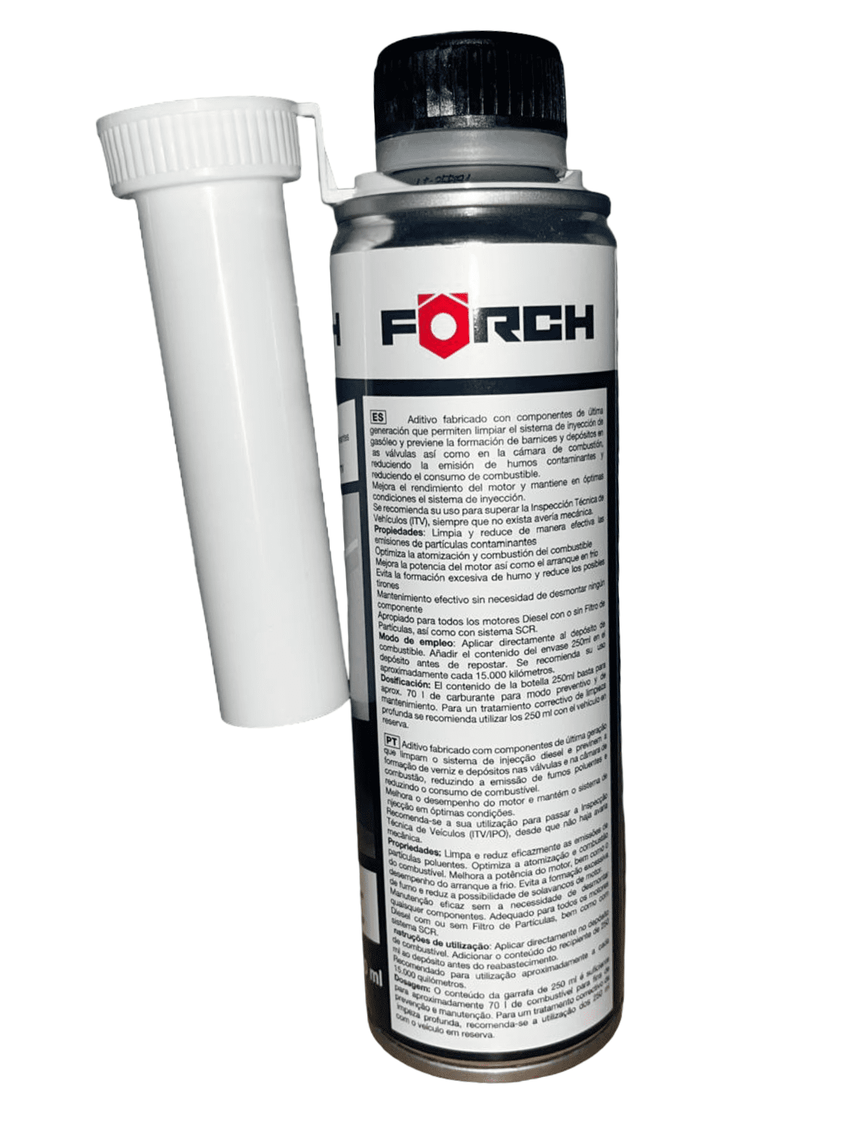 Aditivo Antihumos Diesel Förch está formulado con tecnología de última generación para limpiar y optimizar el sistema de inyección de gasóleo, prevenir la acumulación de barnices y depósitos en válvulas y cámara de combustión, y reducir las emisiones contaminantes.