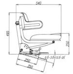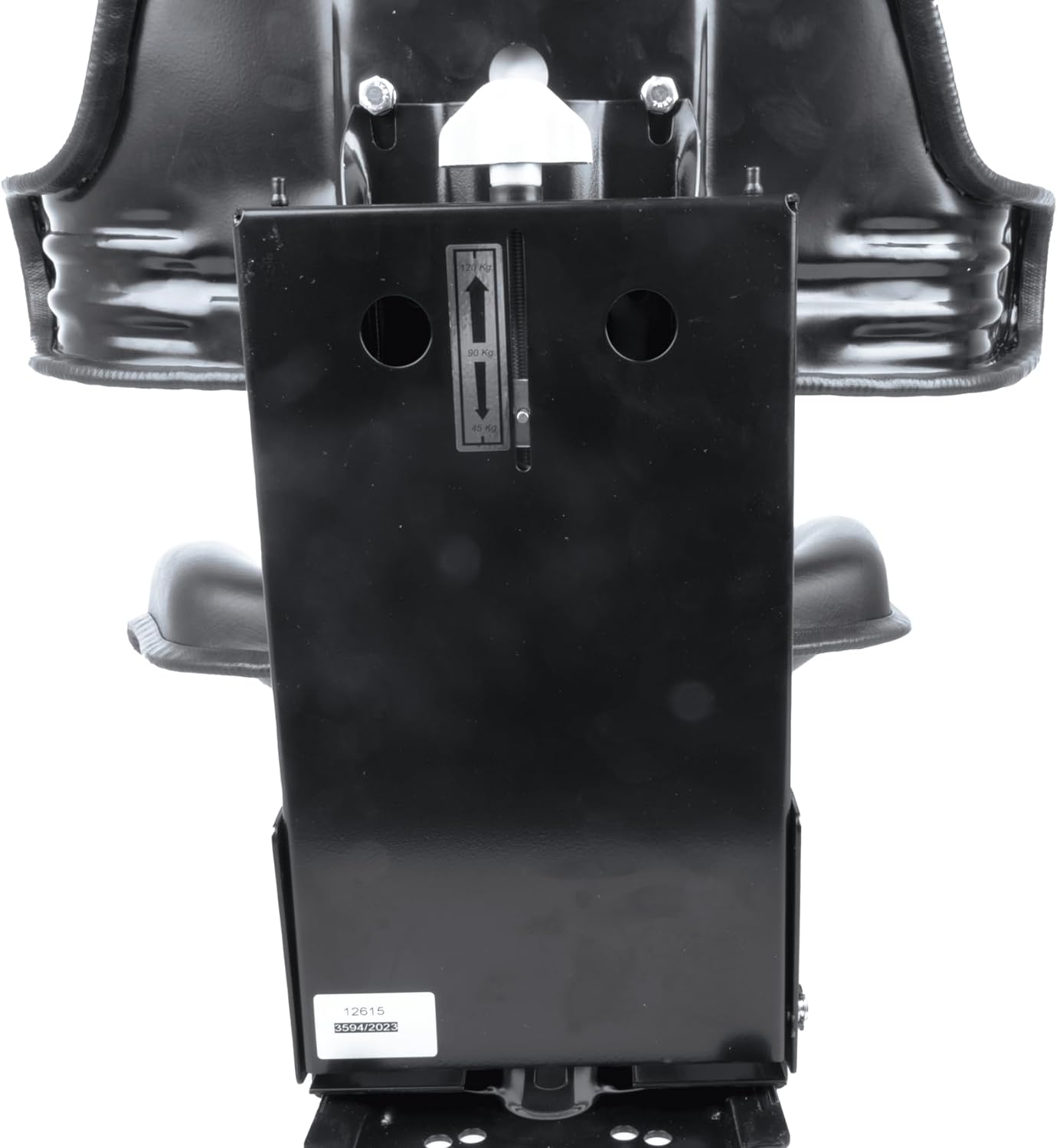 Dispone de una resistente suspensión mecánica trasera con 2 muelles y 1 amortiguador central, que permite una absorción eficaz de las vibraciones y los impactos generados durante el trabajo en terrenos irregulares. Además, incorpora regulación de peso y de inclinación del anclaje, permitiendo al operador ajustar el asiento a su comodidad según su complexión (de 45 kg a 120 kg).