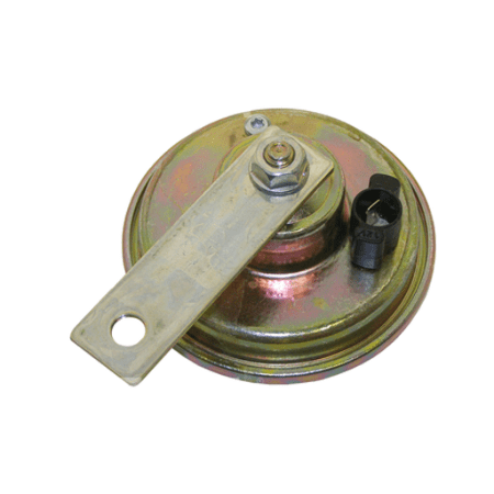 Claxon eléctrico tipo disco, diseñado para maquinaria industrial y vehículos que requieren señal acústica de alta intensidad. Funciona a 12 V, ofrece un sonido grave y un nivel sonoro de 110 dB, frecuencia 335 Hz, conexión pala 6.3 mm.