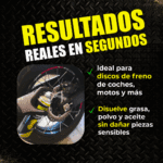 Este aerosol de 500 ml es ideal para mantenimiento y limpieza en coches, motocicletas, bicicletas, camiones, maquinaria pesada y aplicaciones industriales. Su uso regular ayuda a mantener el rendimiento óptimo del sistema de frenado, prolongando la vida útil de las piezas y mejorando la seguridad en carretera.