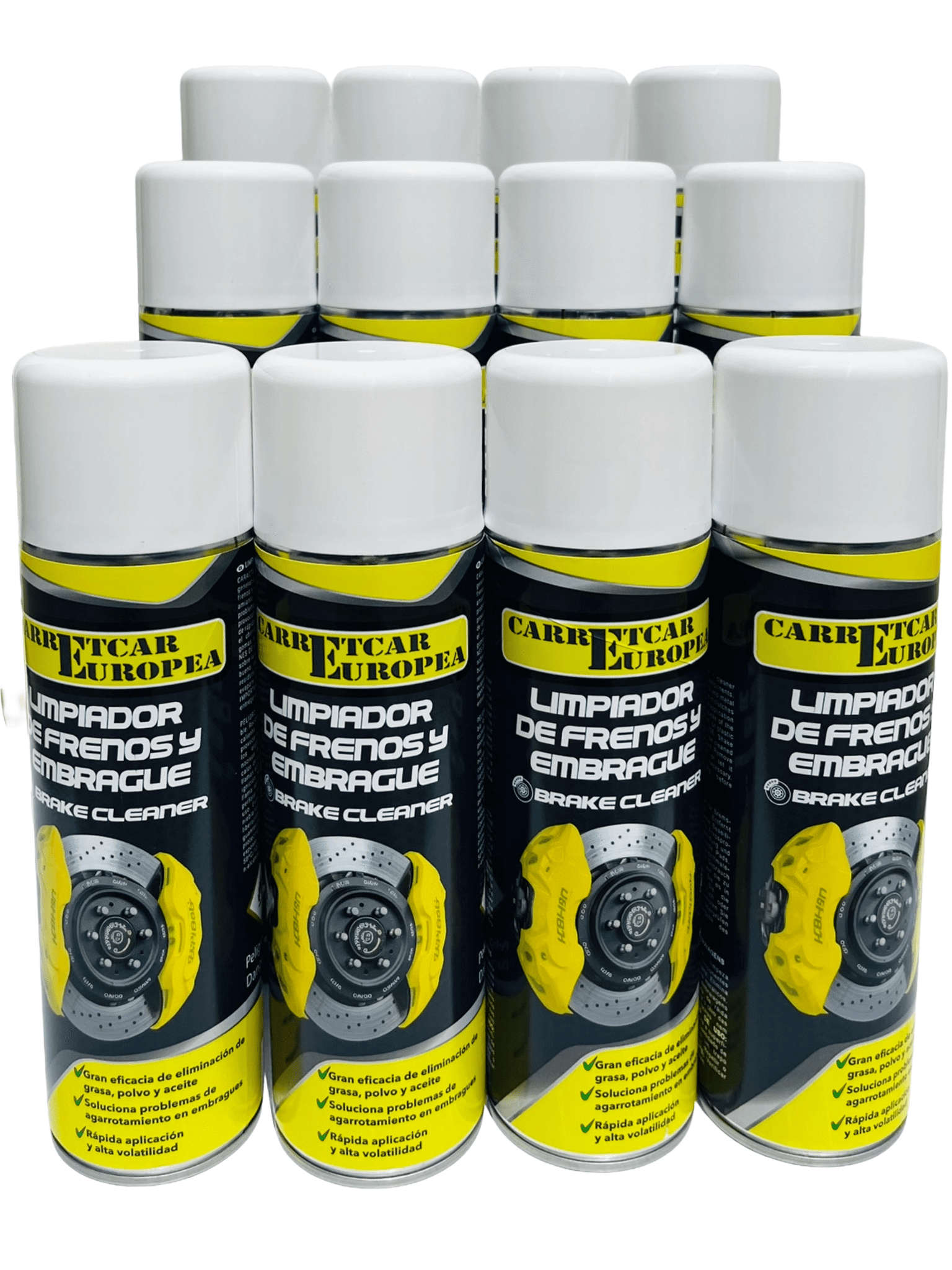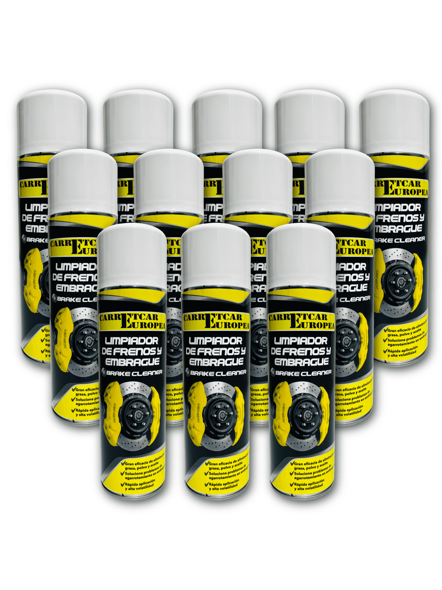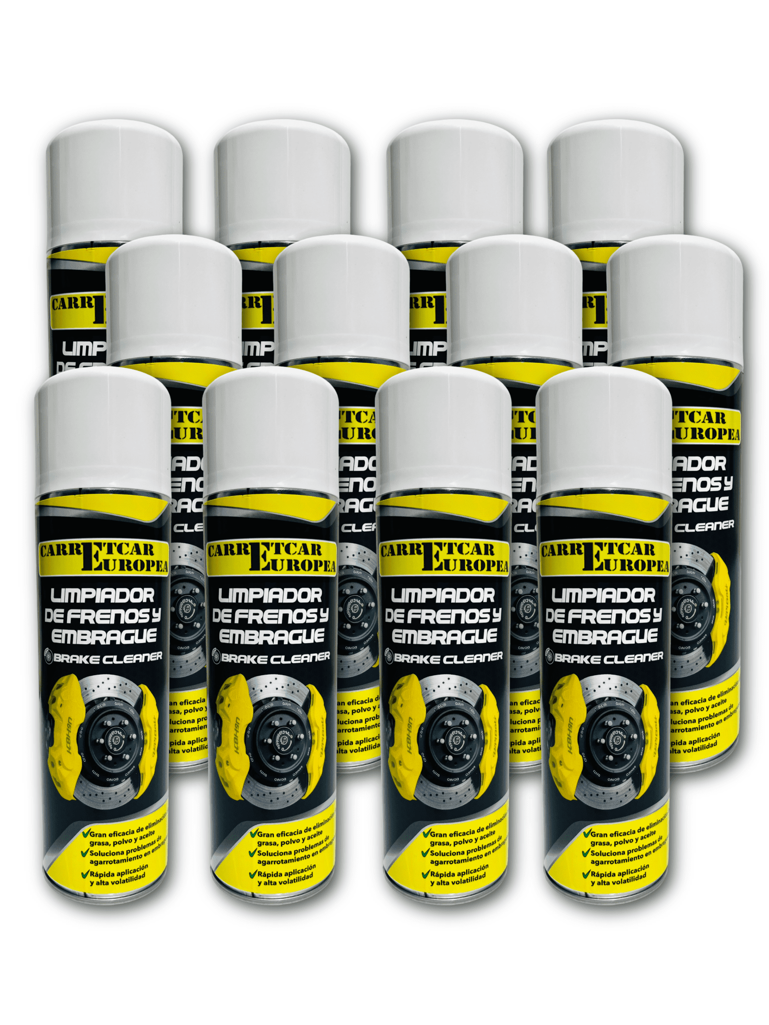 Limpiador de Frenos en Spray Carretcar Europea – Eliminación Profesional de Grasa, Aceite y Suciedad | 12 x 500ml de Alta Potencia para Coches, Motos, Bicicletas y Talleres | OFERTA DE LANZAMIENTO